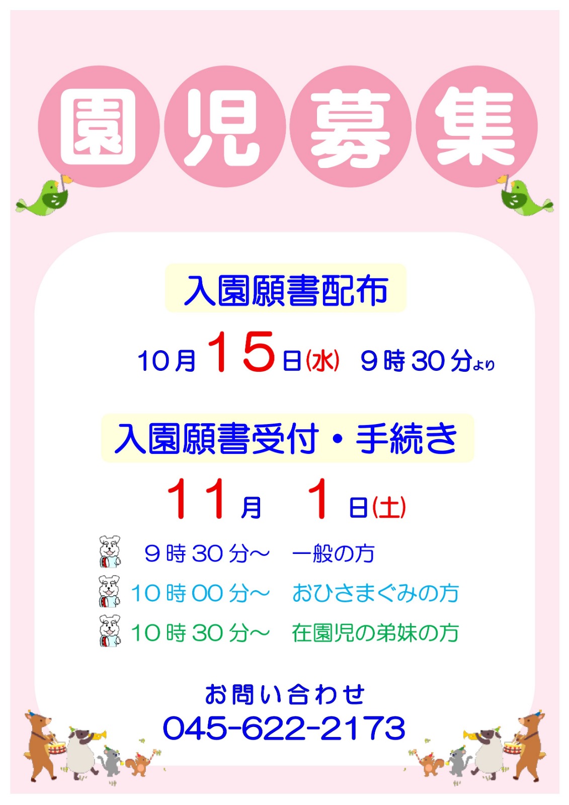 【2歳児プレ】ひよこぐみ募集のお知らせ